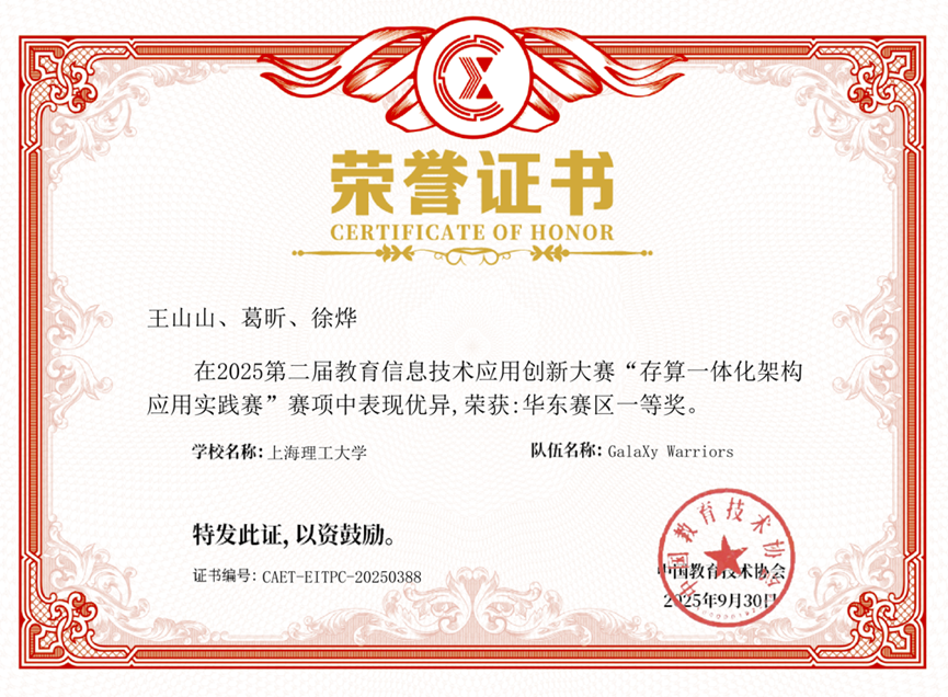 在9月14日的“2025年第二届教育信息技术应用创新大赛”区域赛中,由我校计算中心与信息化办公室联合组建的教师参赛团队表现卓越,凭借在“存算一体化架构应用实践”赛道中的出色发挥,荣获区域一等奖,成功晋级全国总决赛。